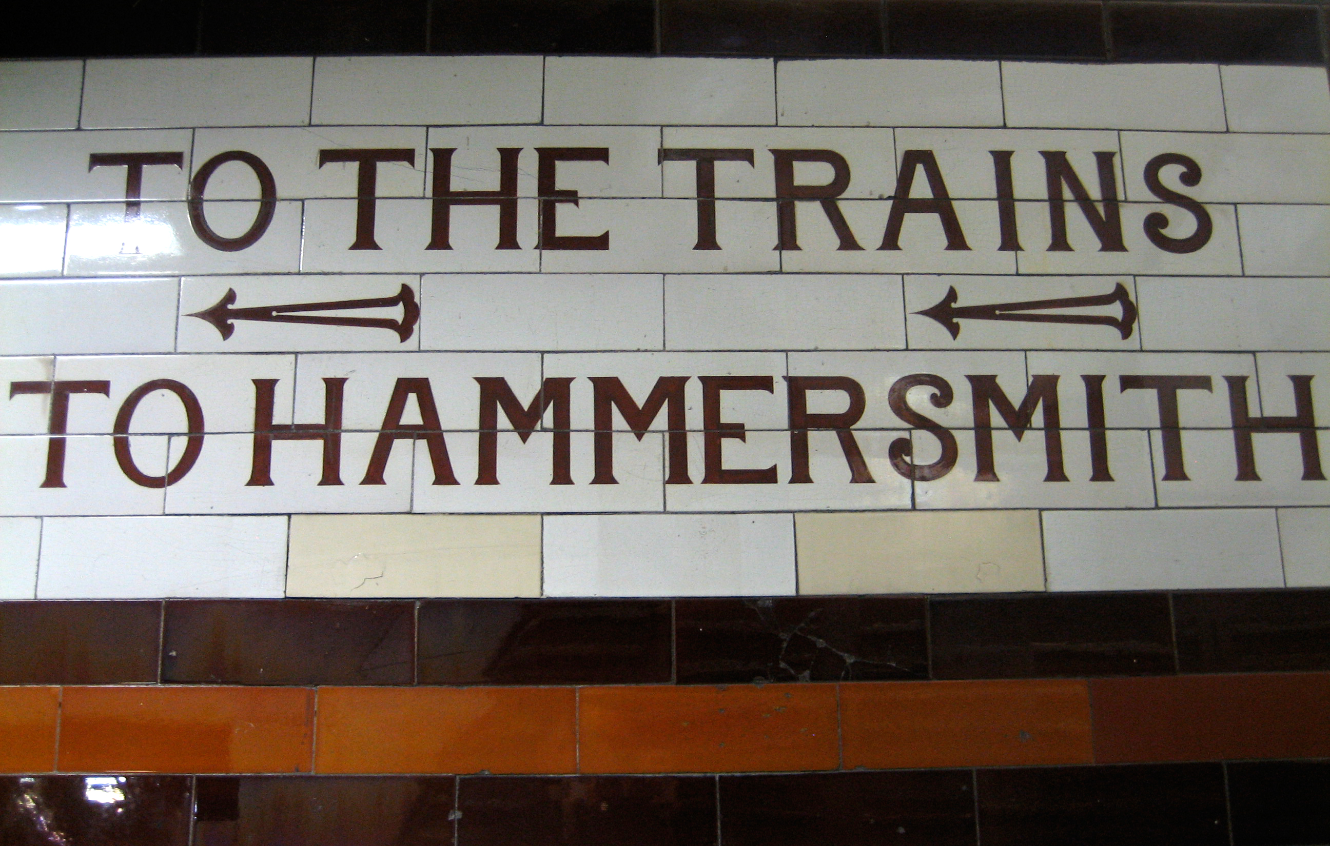 A cultural historian would be able to take a good guess at its age, likewise a scholar of advertising typography. Just when was tea tuppence a bag (tuppence, tuppence, tuppence a bag*)? Not since the war, certainly. There’s been a station at East Ham since 1858, though the ticket hall is Edwardian. My guess is the sign hails from sometime between 1902, when the District line first came this way, and 1936, when the Metropolitan arrived. It was painted to promote an adjoining cafe, long since vanished – as has this kind of gorgeous lettering, tea shops in general, and the notion that putting “d” after a number is not a reference to a boy band.
